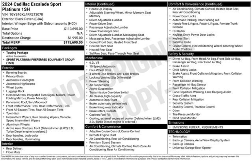 Recent Arrival! 2024 Black Raven Cadillac Escalade Sport Platinum AWD 6.2L V8 This Cadillac Escalade has many features and is well equipped including.