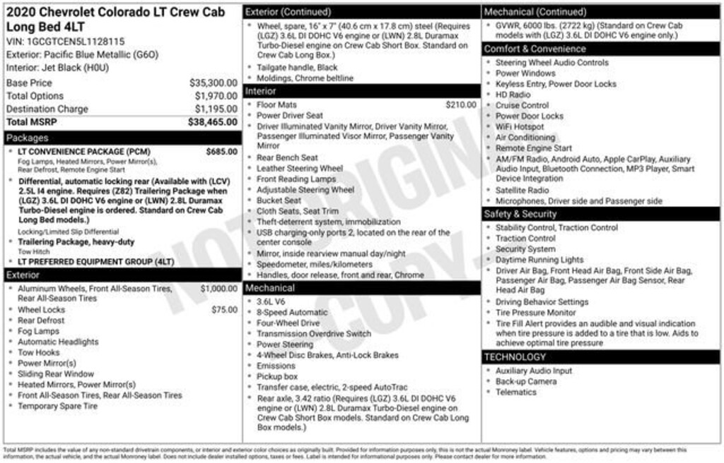 Recent Arrival! 2020 Pacific Blue Metallic Chevrolet Colorado LT 4WD V6 This Chevrolet Colorado has many features and is well equipped including.