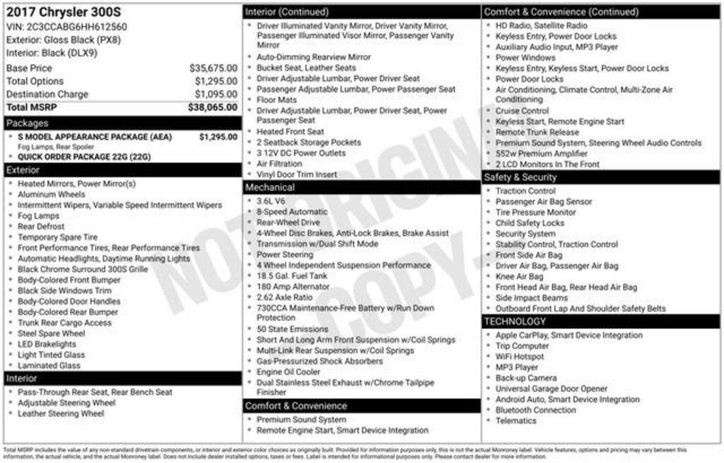 Recent Arrival! 2017 Gloss Black Chrysler 300 S RWD 3.6L V6 24V VVT This Chrysler 300 has many features and is well equipped including.