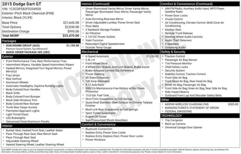 Recent Arrival! 2015 Pitch Black Clearcoat Dodge Dart Limited/GT FWD 2.4L I4 PZEV MultiAir This Dodge Dart has many features and is well equipped including.