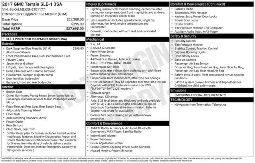 Recent Arrival! 2017 Dark Sapphire Blue Metallic GMC Terrain SLE-1 FWD 2.4L 4-Cylinder SIDI DOHC VVT This GMC Terrain has many features and is well equipped including.