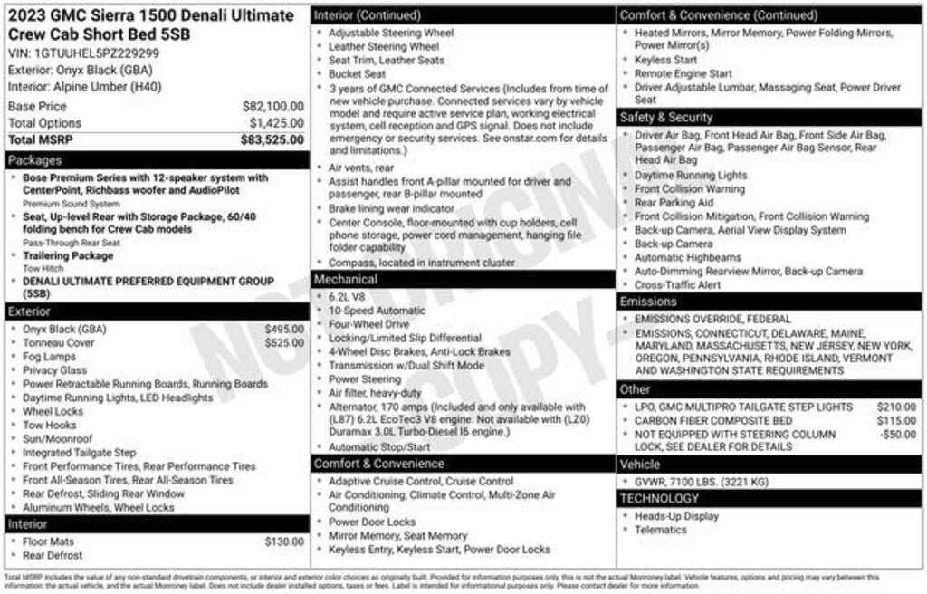 Certified. Recent Arrival! 2023 Onyx Black GMC Sierra 1500 Denali Ultimate 4WD EcoTec3 6.2L V8 This GMC Sierra 1500 has many features and is well equipped including.Priced below KBB Fair Purchase Price!GMC Certified Pre-Owned Details:* Powertrain Limited Warranty: 72 Month/100,000 Mile (whichever comes first) from original in-service date* 24 months/24,000 miles (whichever comes first) Certified Pre-Owned Scheduled Maintenance Plan and 3 days/150 miles (whichever comes first) Vehicle Exchange Program. SiriusXM 3-month trial subscription* 172 Point Inspection* Transferable Warranty* Limited Warranty: 12 Month/12,000 Mile (whichever comes first) from certified purchase date* Roadside Assistance* Warranty Deductible: $0* Vehicle HistoryProudly Serving used car and new car Buick and GMC needs of Sandusky, Norwalk, Cleveland, Toledo, Lorain, Elyria, Amherst, Fremont, Vermilion, Willard and the surrounding areas!!