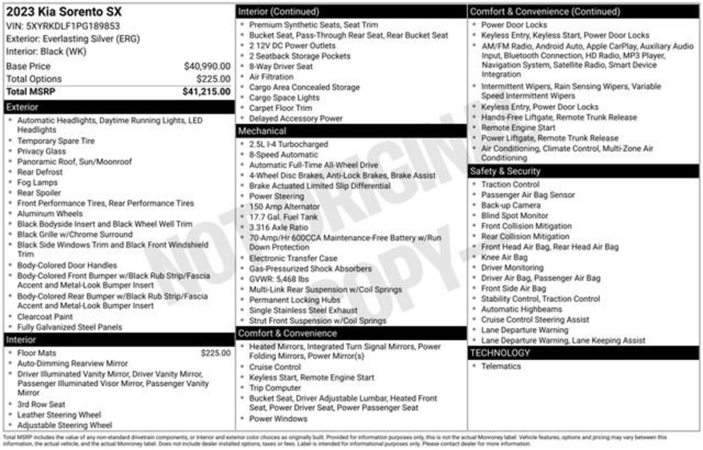 Recent Arrival! 2023 Everlasting Silver Kia Sorento SX AWD 2.5L I4 DGI Turbocharged DOHC 16V LEV3-ULEV70 281hp This Kia Sorento has many features and is well equipped including.Clean CARFAX. CARFAX One-Owner. Odometer is 11052 miles below market average! 22/27 City/Highway MPGProudly Serving used car and new car Buick and GMC needs of Sandusky, Norwalk, Cleveland, Toledo, Lorain, Elyria, Amherst, Fremont, Vermilion, Willard and the surrounding areas!!