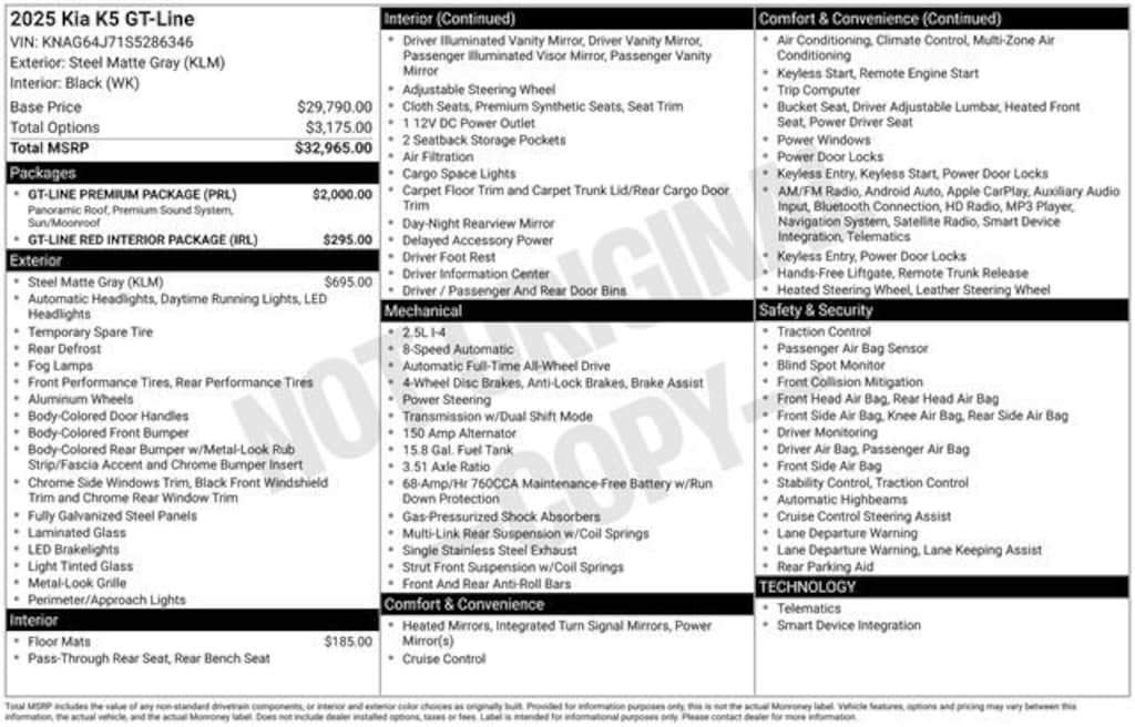 Recent Arrival! 2025 Steel Matte Gray Kia K5 GT-Line AWD I4 This Kia K5 has many features and is well equipped including.CARFAX One-Owner. Odometer is 1512 miles below market average! 24/33 City/Highway MPGProudly Serving used car and new car Buick and GMC needs of Sandusky, Norwalk, Cleveland, Toledo, Lorain, Elyria, Amherst, Fremont, Vermilion, Willard and the surrounding areas!!