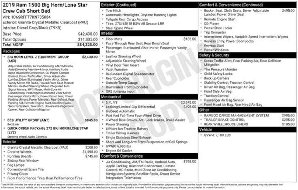 So I optioned first a 2019 Ram Bighorn,8.5 inch nav loaded screen,Level II package,4x4,3:92 axle ELocker,6ft bed.Got pricing from 5 Ram dealerships.Went to 3 Ford dealership’s and all of them never beat the price of the Ram 1500.And these were either ordered or on lots F-150 XLT trim with upgraded to 5.0L V-8 I did not want the V-6 TT turbo engine option to much money with 10 speed.Chevy’s trucks interior was even close in terms of comfort and center-stack just look old schooled.Both the Ford and the Chevy were more money or with in 900.0 dallors of the Ram 1500 but the styling and interior was just way better than the Ford F-150,and the Silverado...GM was not discounting hardly at all so the dealers were bring the price down on there side..Ford F-150’s interior was well just cheap looking with the small screen and hardly had no center storage because the shifter was there,not like the Ram 1500 had. The Ram 1500 center console is just way better design by a mile...Test drove all 3 and the Ram with the coil spring rode the best hands down and was far quieter inside while driving in city traffic during rush hour..My previous truck was a 2014 Ford F-150.I was a brand loyal kinda guy but after all the trips to these dealerships it became evident the Ram 1500 was the easy choice with my hard earn dallor..…